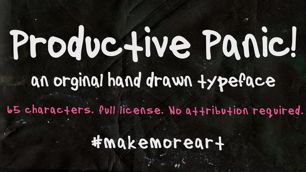 Productive Panic is a rough, expressive, human typeface. Imperfect by design.